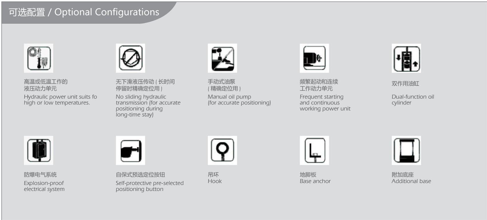 固定式液压升降台:该产品用于和生产线、自动线和专业机械配套使用,完成产品在不同高度的运作,在不同作业环境下,可选择不同的台面形式(如动力或无动力滚筒、万向球、可倾斜台面、旋转台面、V型架等)。